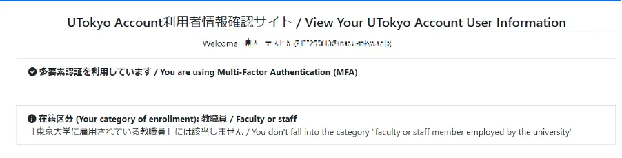 1. UTokyo Account利用者情報確認サイト」を開いてください.