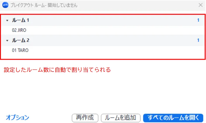 4. 割り当てたい参加者が全員ブレイクアウトルームに割り当てられていることを確認してください.