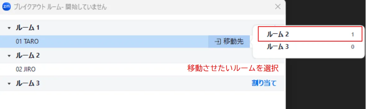 いずれの方法で割り当てを行っても,割り当てた後に,特定の参加者を別のルームに移動させることや,別の人と交換することが可能です.