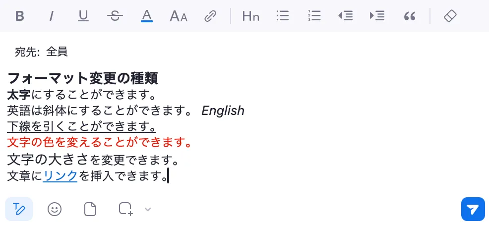 送信するチャットのフォーマットを変更できます.具体的には,文字を太字にしたり,下線をつけたり,箇条書きにしたりできます.