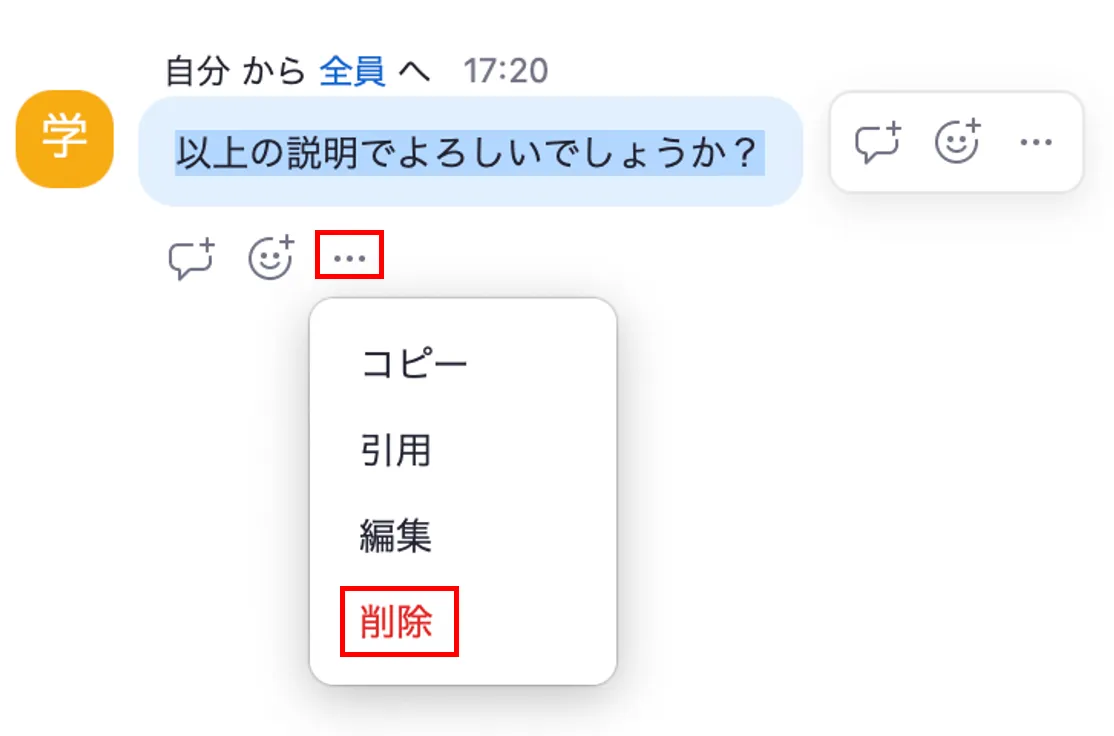 - チャット画面で,送信したメッセージ下の「…」アイコンを押してください.