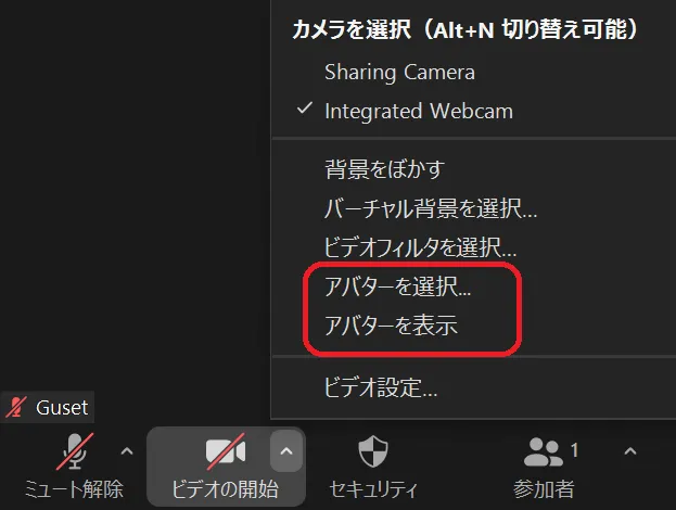 ミーティング中にアバターを有効にする